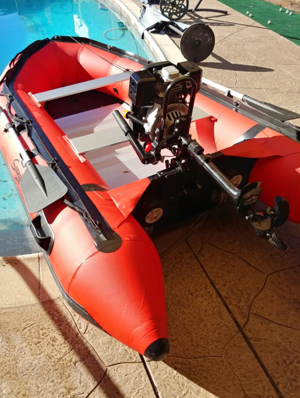 "I purchase this a while back for my 11ft blow up boat as shown in the picture. Took me a while to test it out in the lake. The motor arrived quickly and the seller/mfg was quick to respond to all my questions. The first test the throttle was low and maybe made 5mph. I reached out to them and after they instructed on how to adjust the throttle, and increase the RPM through a video they made, the second test was better. However, it still did not have enough HP for my specific boat to get it to plane.